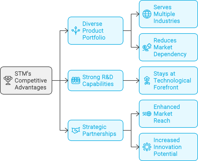 One of STM's most significant competitive advantages is its diverse product portfolio. By serving multiple industries, including automotive, industrial, and consumer electronics, STM reduces its dependency on any single market segment. This diversification not only provides a buffer against cyclical downturns in specific industries but also positions the company to capitalize on growth opportunities across different sectors.