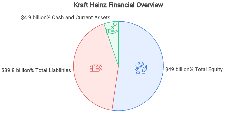 Kraft Heinz’s balance sheet remains solid, with $49 billion in total equity. However, total liabilities reached $39.8 billion, driven by non-current liabilities such as long-term debt. The company’s high debt load is something to monitor closely, especially in a rising interest rate environment. Cash and current assets are stable at $4.9 billion, providing sufficient liquidity.