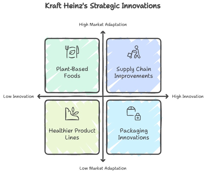 To adapt to shifting consumer preferences, Kraft Heinz is expanding its offerings in plant-based foods and healthier product lines. These innovations cater to health-conscious consumers, who are increasingly seeking sustainable, organic, and low-processed options. Additionally, Kraft Heinz is investing in supply chain improvements and packaging innovations that could boost efficiency and drive growth.